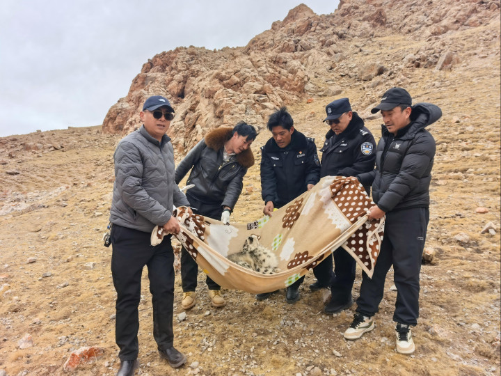 雪豹“凌小蛰”救护现场。(青海野生动物救护繁育中心供图)